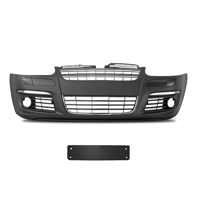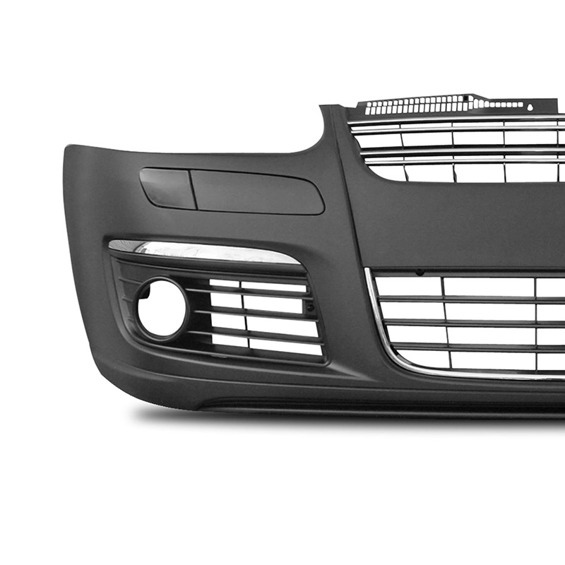 Jetta Sport style 1 piece front bumper, comes with chrome inserts and grill slats. Comes with recess for fog lights. Fog lights optional.
