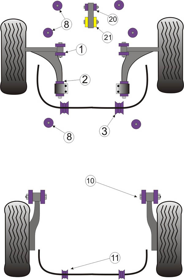 This in turn causes accelerated tyre wear, braking instability and poor handling. This is the single biggest reason you can instantly tell the difference driving a three year old car compared to a showroom new one. However even new cars will benefit from POWERFLEX bushes because of their superior design they offer much more effective control of the suspension components to a much greater extent than normal rubber items.