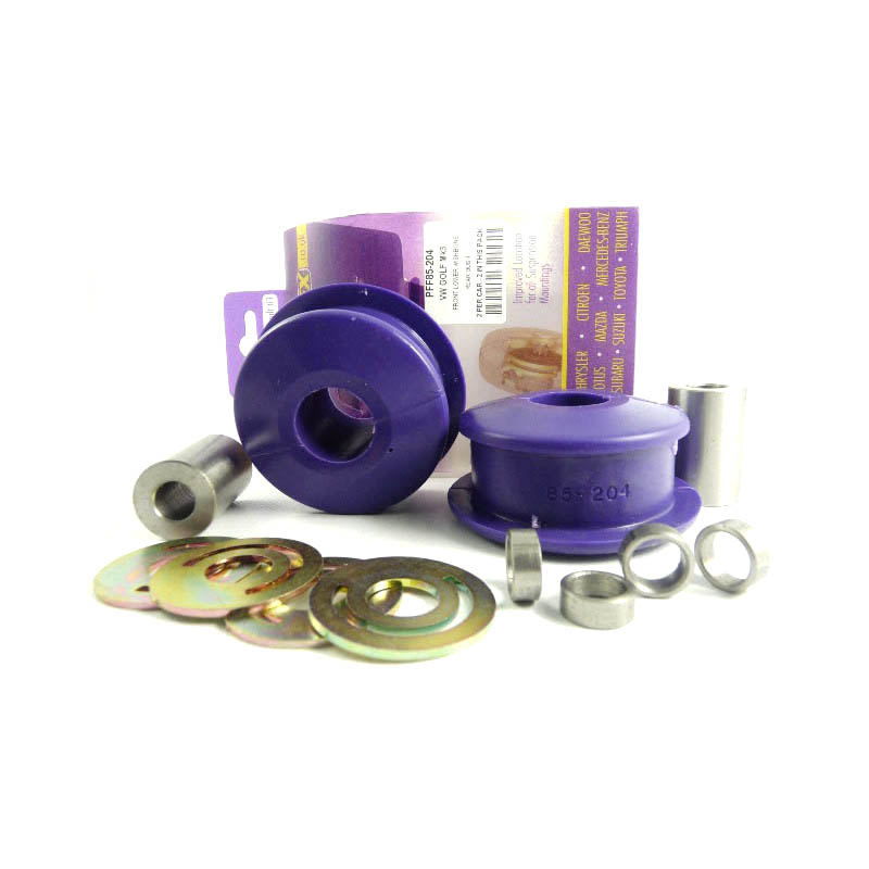 With the technological advances in this material it has been possible to overcome the common problem associated with harder bushes which is increased noise. By correctly engineering the polyurethane compound, bushes can be made 25-30% stiffer than new rubber items but with exactly the same noise absorbing properties. POWERFLEX bushes make sense.