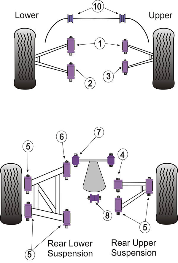 This in turn causes accelerated tyre wear, braking instability and poor handling. This is the single biggest reason you can instantly tell the difference driving a three year old car compared to a showroom new one. However even new cars will benefit from POWERFLEX bushes because of their superior design they offer much more effective control of the suspension components to a much greater extent than normal rubber items.