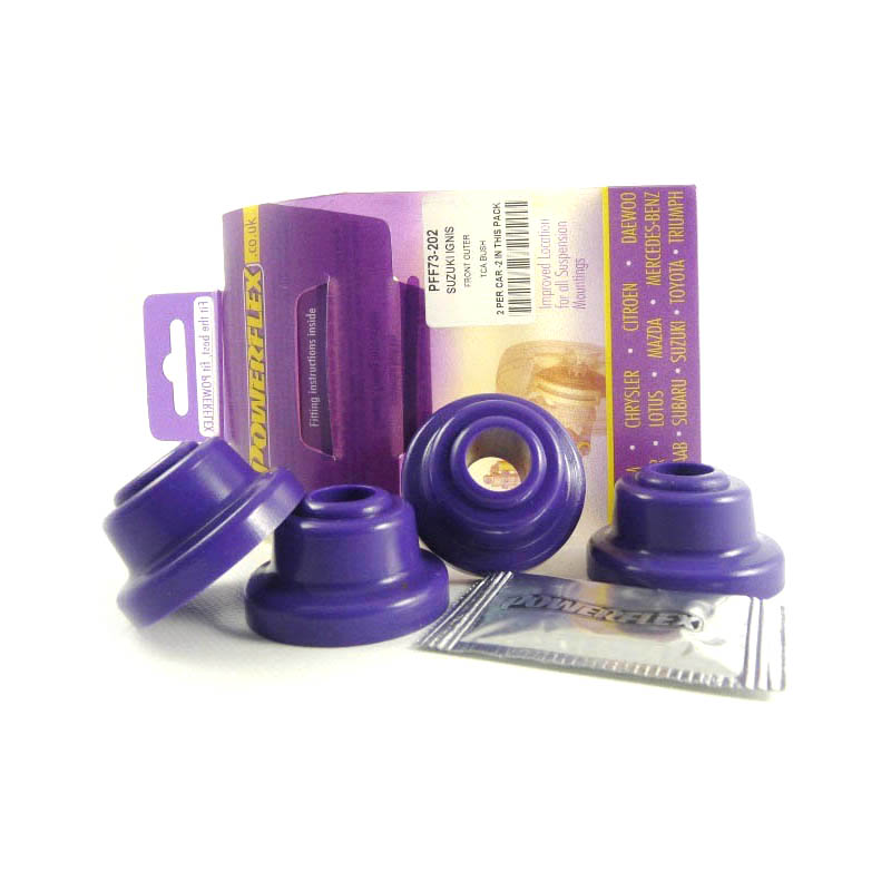With the technological advances in this material it has been possible to overcome the common problem associated with harder bushes which is increased noise. By correctly engineering the polyurethane compound, bushes can be made 25-30% stiffer than new rubber items but with exactly the same noise absorbing properties. POWERFLEX bushes make sense.