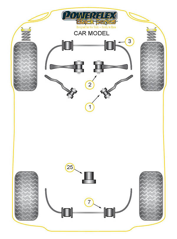 Powerflex Black Series are designed for the Track - Ready to Race - Engineered to be the best. Powerflex Black Series bushes are manufactured using a 95 Shore A compound to provide maximum control of chassis geometry. This compound can be up to 80% more resistant to load than standard rubber and 25% stiffer than our purple performance material. If your requirements are purely for the ultimate in handling and chassis performance then Powerflex Black Series are unique, offering the most precise and accurate alignment for your chassis.