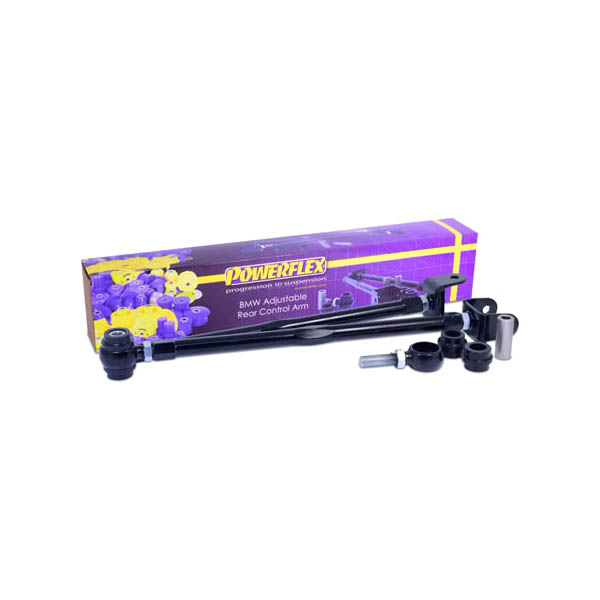 PFR5-4615G Adjustable Rear Control Arm provides on car rear camber adjustment, allowing a +1.0 to -3.0 change for precision alignment - Useful to correct excessive camber on heavily lowered cars. This arm includes high performance polyurethane bushes that are suitable for road and track use without the comfort and longevity issues associated with spherical joints. PFR5-4615G replaces the original arm and bush OE numbers: 33326770813 and 33326770824 respectively. For a replacement bush only to fit in the original arm, please use PFR5-4616.