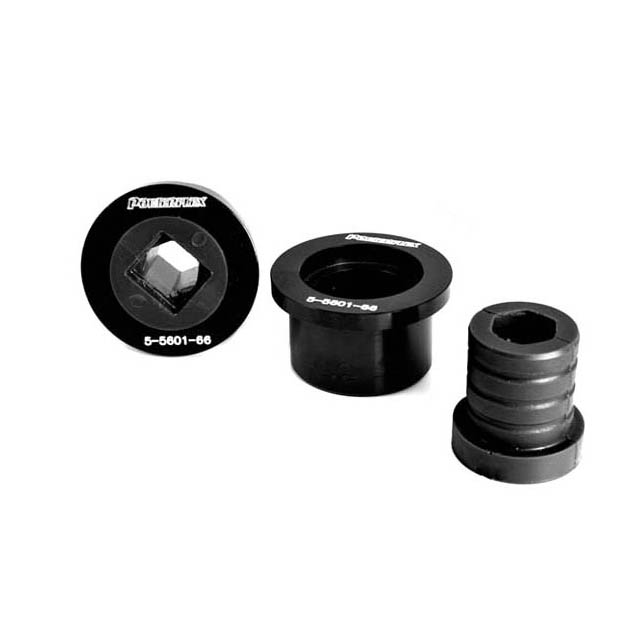 PFF5-5601 is a high performance option to PFF5-4601, and aimed at offering greater precision for people wanting the very best from their E46 or Z4. This new part, fitted to the rear of the front wishbone has a hard anodised aluminium outer shell with one of our unique low friction polyurethane centre bushes. The poly/alu combination creates a low friction rotating bush reducing the forces acting on the arm. Lower arm deflection has been decreased by reducing the compliant material within the aluminium shell. Results are less movement in the arm under cornering and braking, improving steering control and feel. This bush is designed to fit the 66mm aluminium bush OE mounting bracket (BMW part 31126783376) Please ensure you have the correct size bush before fitting.