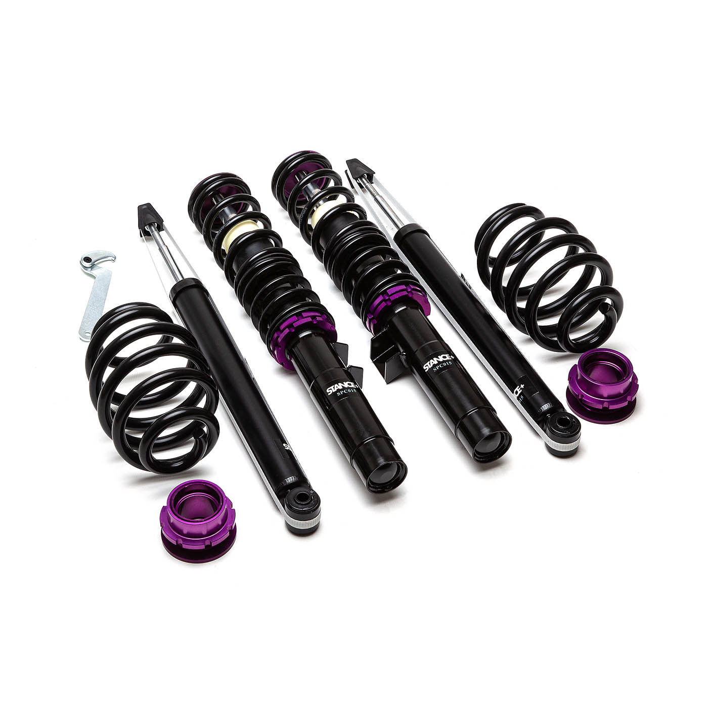The Stance+ Street ride height adjustable Coilover suspension kits have been engineered and built to a very high standard. The units are made from Steel and powder coated Black to help weather protection. The kits are made exclusively for Stance+ and are meticulously inspected throughout the build process ensuring you get the very best quality suspension possible.