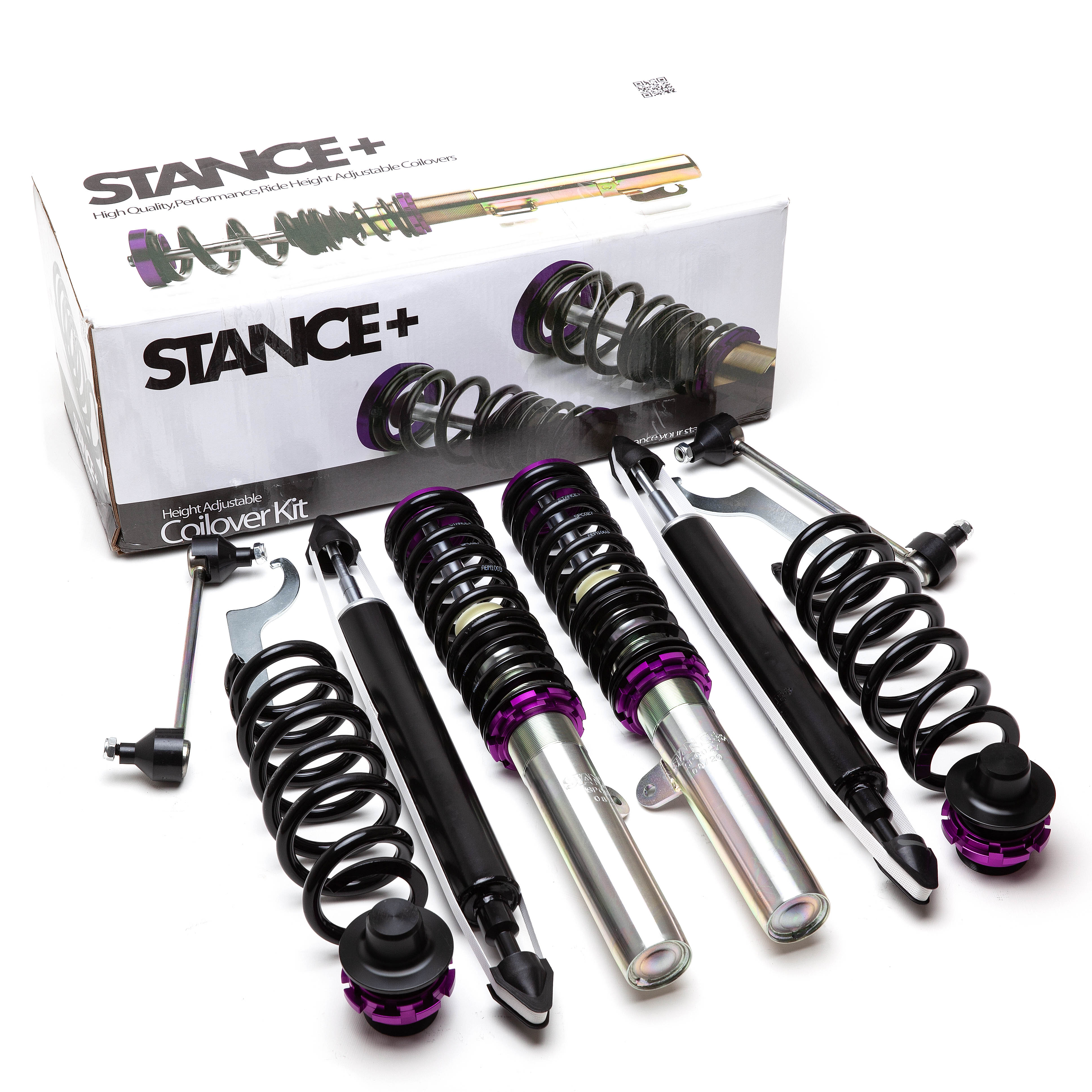 The Stance+ Ultra ride height adjustable Coilover suspension kits allow a max lowering from 30mm-90mm (most applications). The units are made from Steel and zinc plated to help weather protection. The kits are made exclusively for Stance+ and are meticulously inspected throughout the build process ensuring you get the very best quality suspension possible.