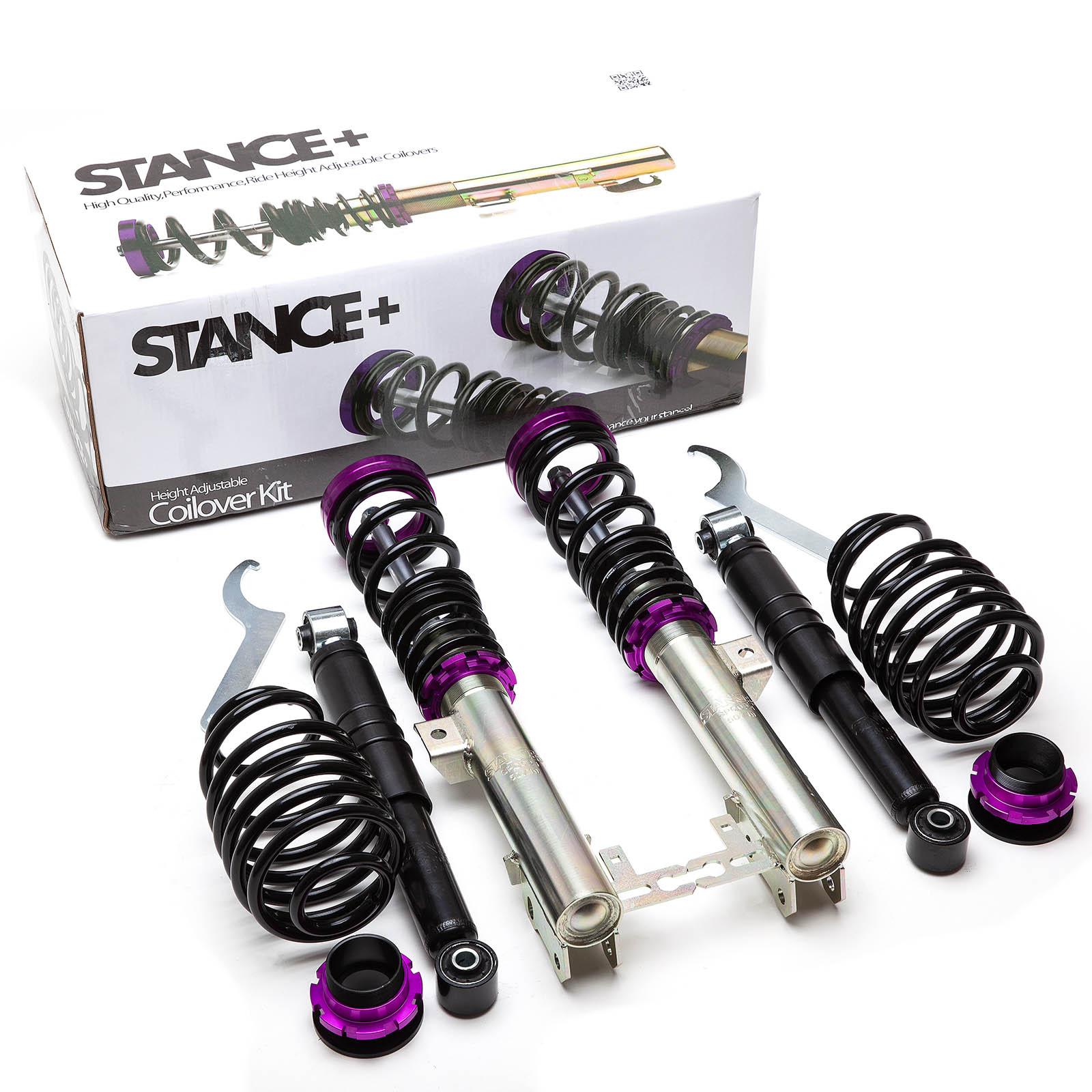 The Stance+ Ultra ride height adjustable Coilover suspension kits allow a max lowering from 30mm-90mm (most applications). The units are made from Steel and zinc plated to help weather protection. The kits are made exclusively for Stance+ and are meticulously inspected throughout the build process ensuring you get the very best quality suspension possible.